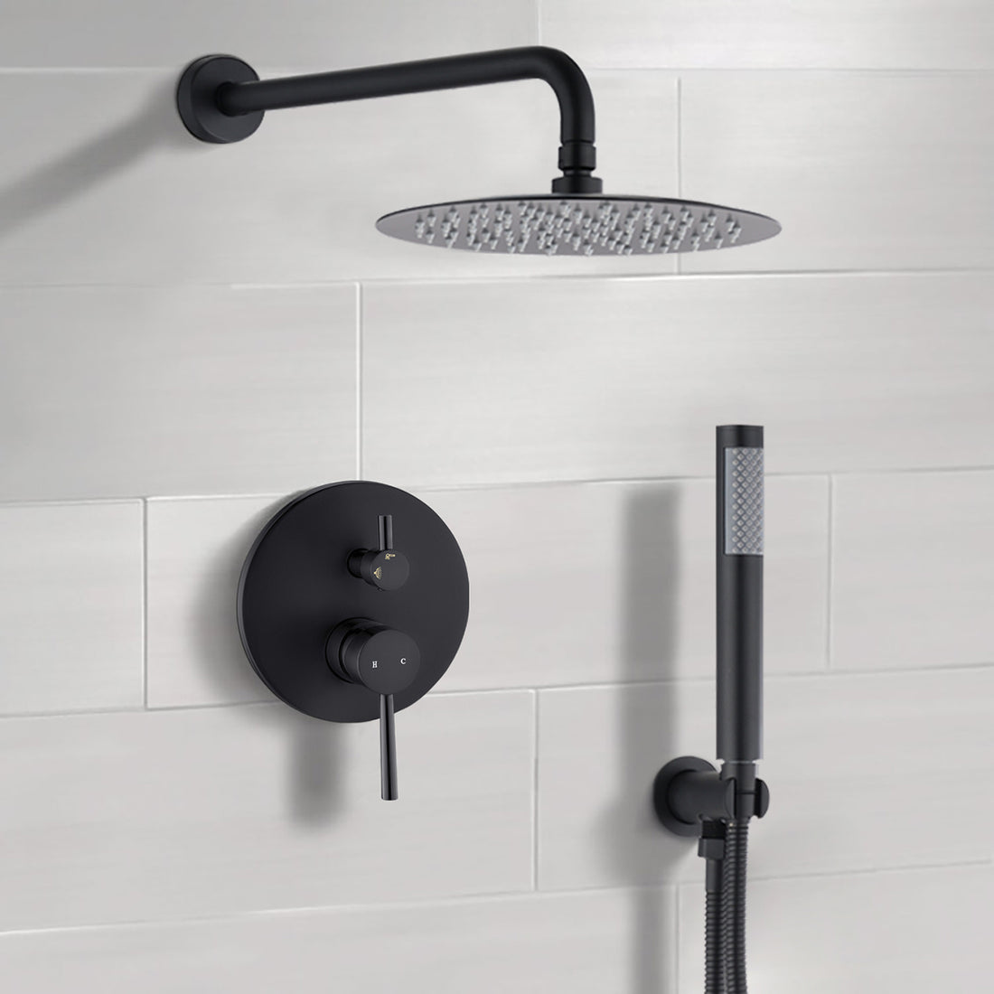 10" Matte Black Roud Rain Shower Head And Handheld Shower Head Set Matte Black Brass