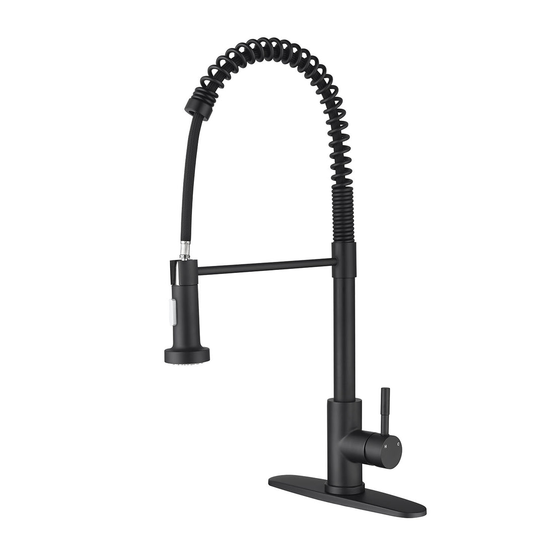 Pull Down Single Handle Spring Kitchen Faucet Matte Black Stainless Steel