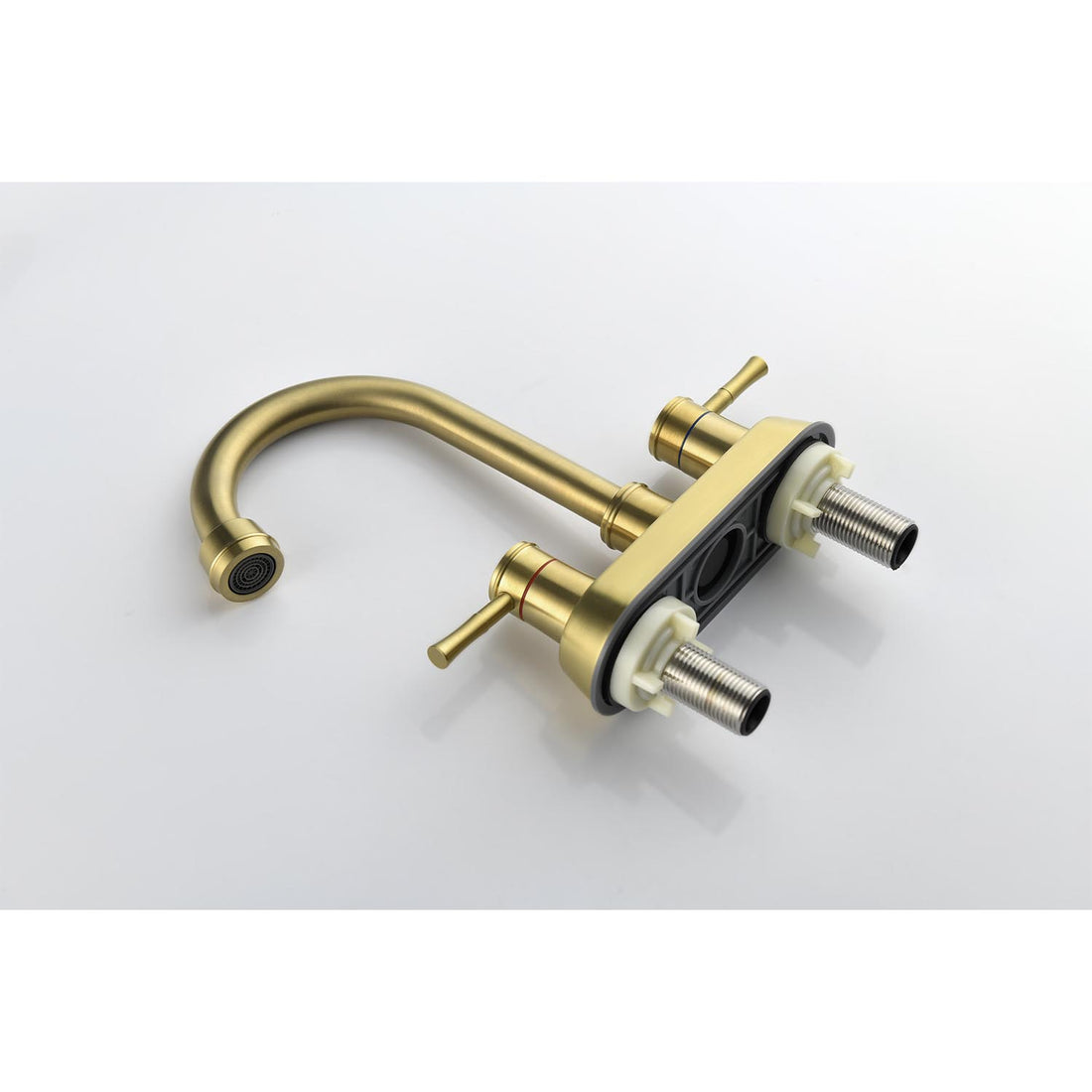 4 Inches Centerset Bathroom Faucet 360 Swivel Spout, With Pop Up Drain Brushed Gold Brushed Gold Zinc