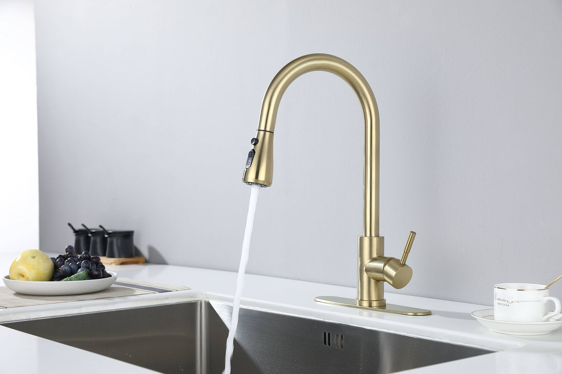 Kitchen Faucet With Pull Out Spraye Brushed Gold Stainless Steel
