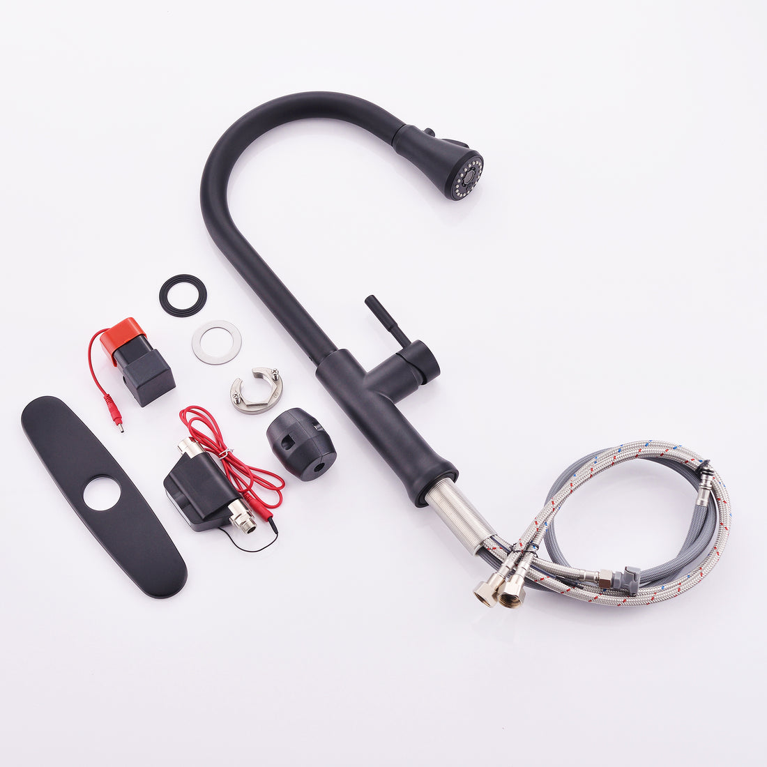 Name: Kitchen Sink Faucet with Single Handles, Black Characteristics: The Kitchen faucet is with Sus...