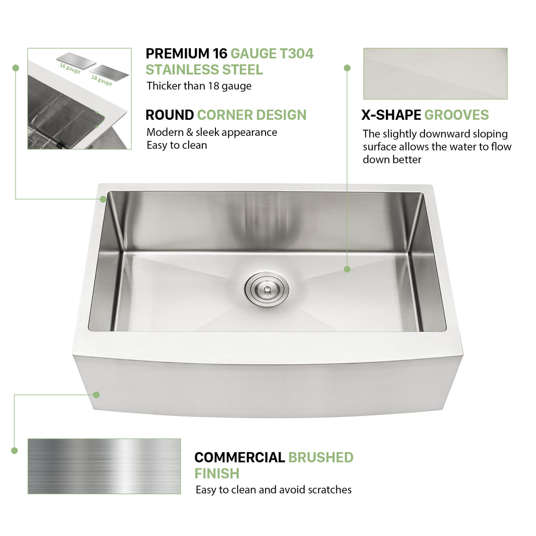 Name: 30 Inch Farmhouse Kitchen Sink - 30"x21"x10" Stainless Steel Apron Front Farmhouse Sink 10...