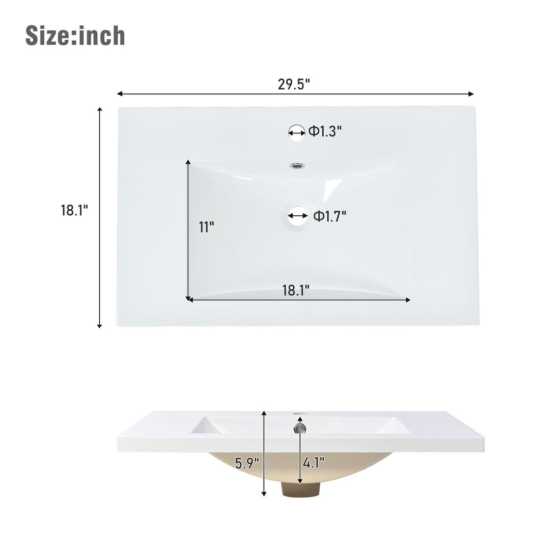 Name: [Sink Only]30" Bathroom vanity Characteristics: Resin Basin: Features a one-piece Resin basin for durability...