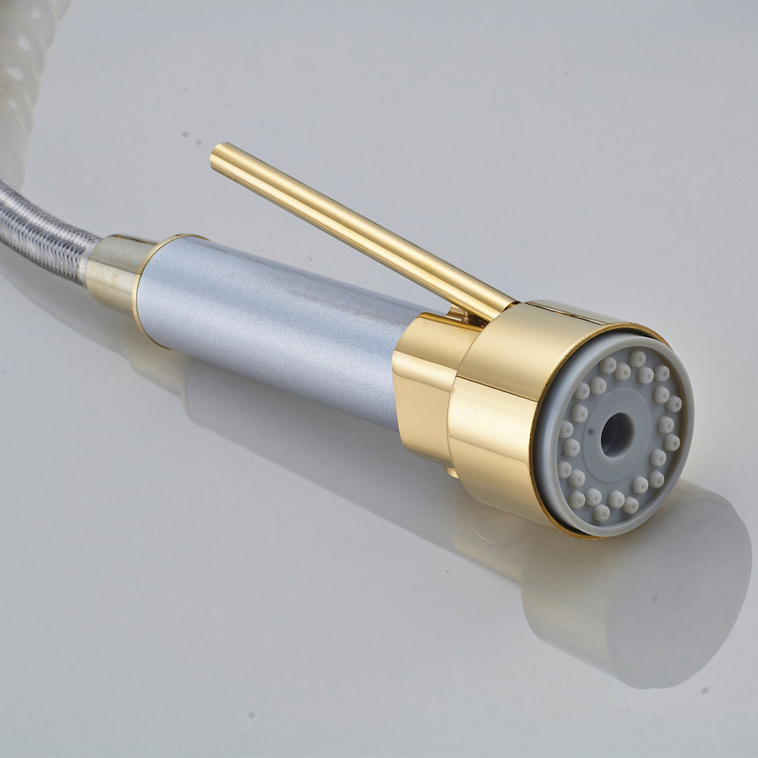 Commercial Kitchen Faucet With Pull Down Sprayer, Single Handle Single Lever Kitchen Sink Faucet Brushed Gold Faucet Gold Kitchen Contemporary Ceramic Brass