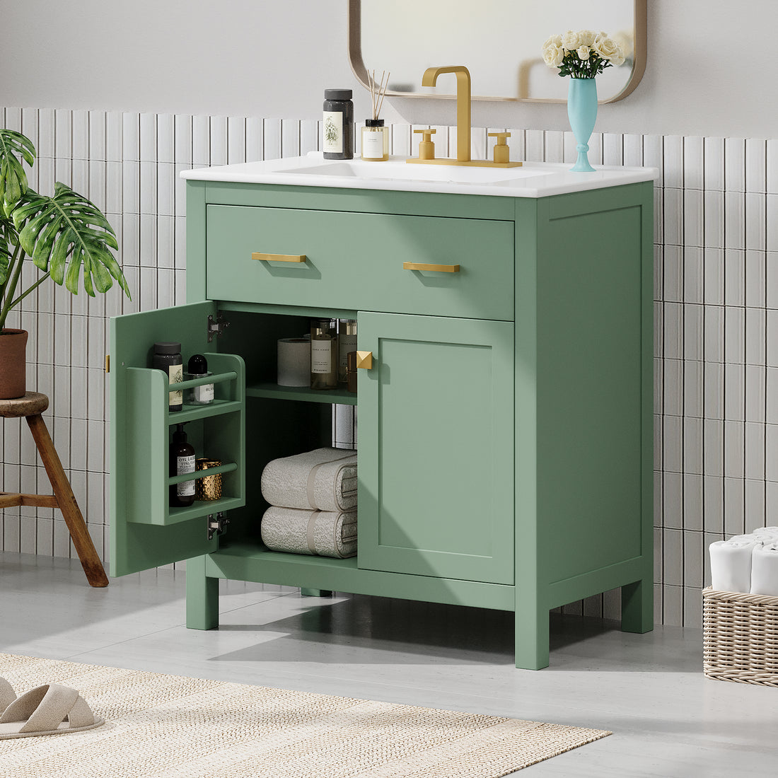 Name: 30-inch Bathroom Vanity with Ceramic Sink, Modern Green Single Bathroom Cabinet with 2 Doors...