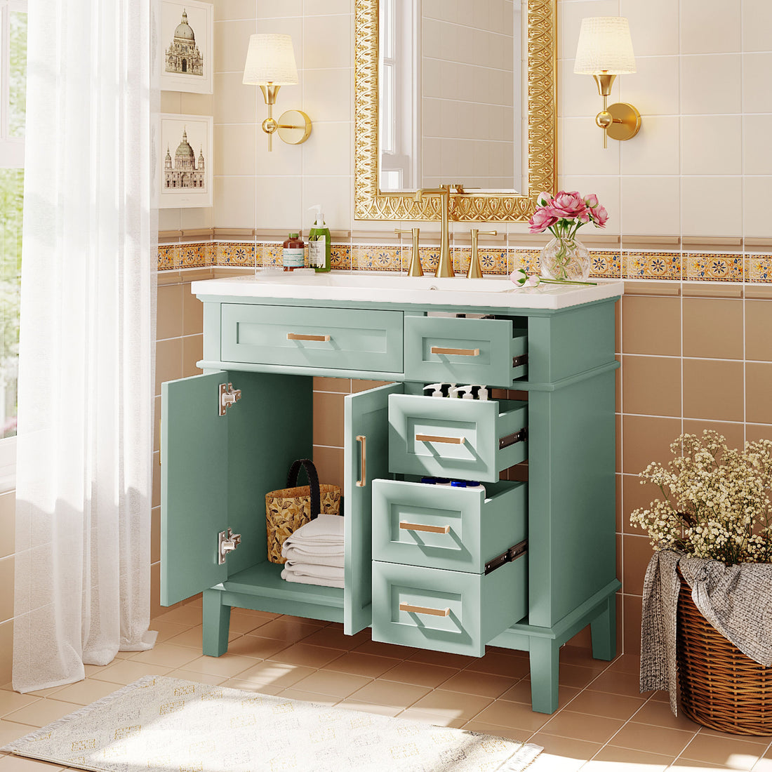 36 Inch Bathroom Vanity With Resin Sink, Modern Bathroom Cabinet In Green, Featuring Two Soft Close Doors And Four Drawers Green Bathroom Solid Wood Mdf Resin