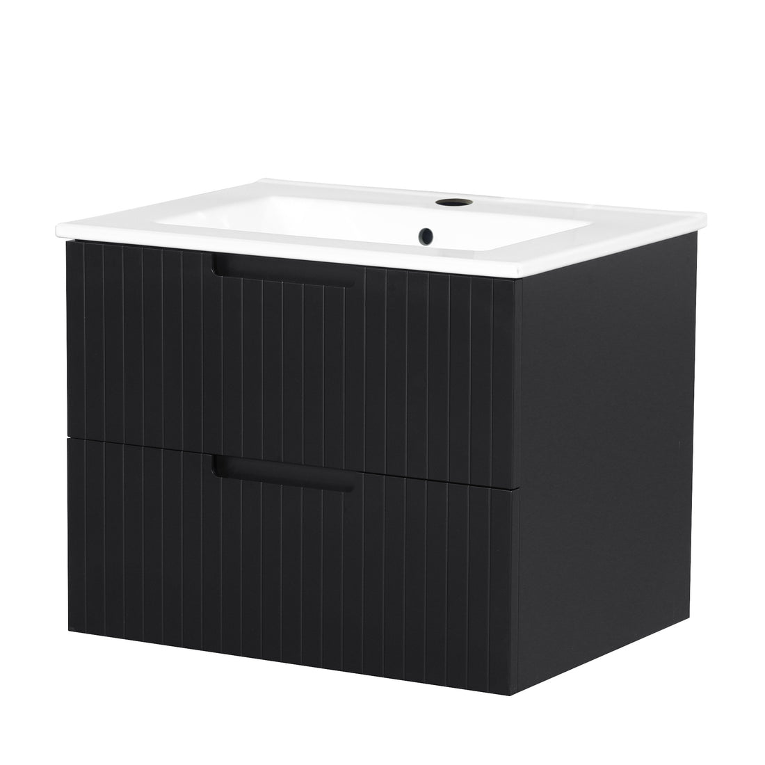 24 Inch Floating Bathroom Vanity With Ceramic Sink, Modern Bath Storage Cabinet Vanity With Drawers Wall Mounted Combo Set For Bathroom, Black Black Mdf
