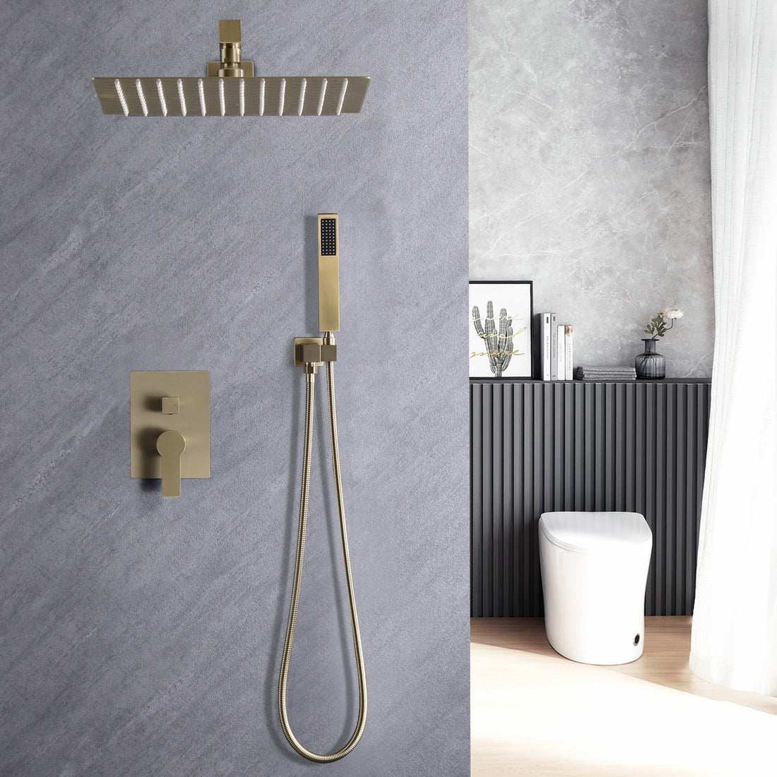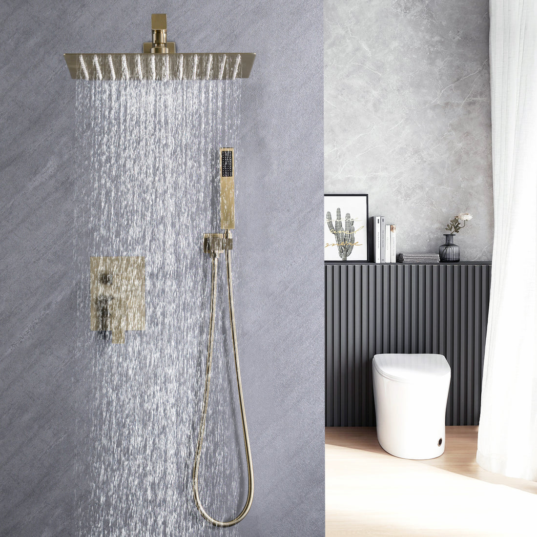 10Inch Brushed Gold Brass Rainfall Shower System, Luxuly Bathroom Shower Faucet Combo Set Brushed Gold Stainless Steel