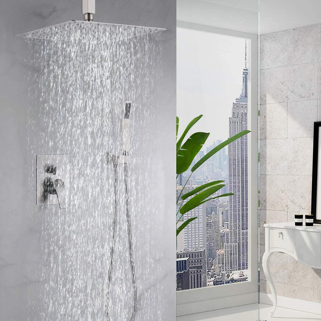 12 Inch Bathroom Rain Shower Combo Set With Hand Shower Brushed Nickel Stainless Steel