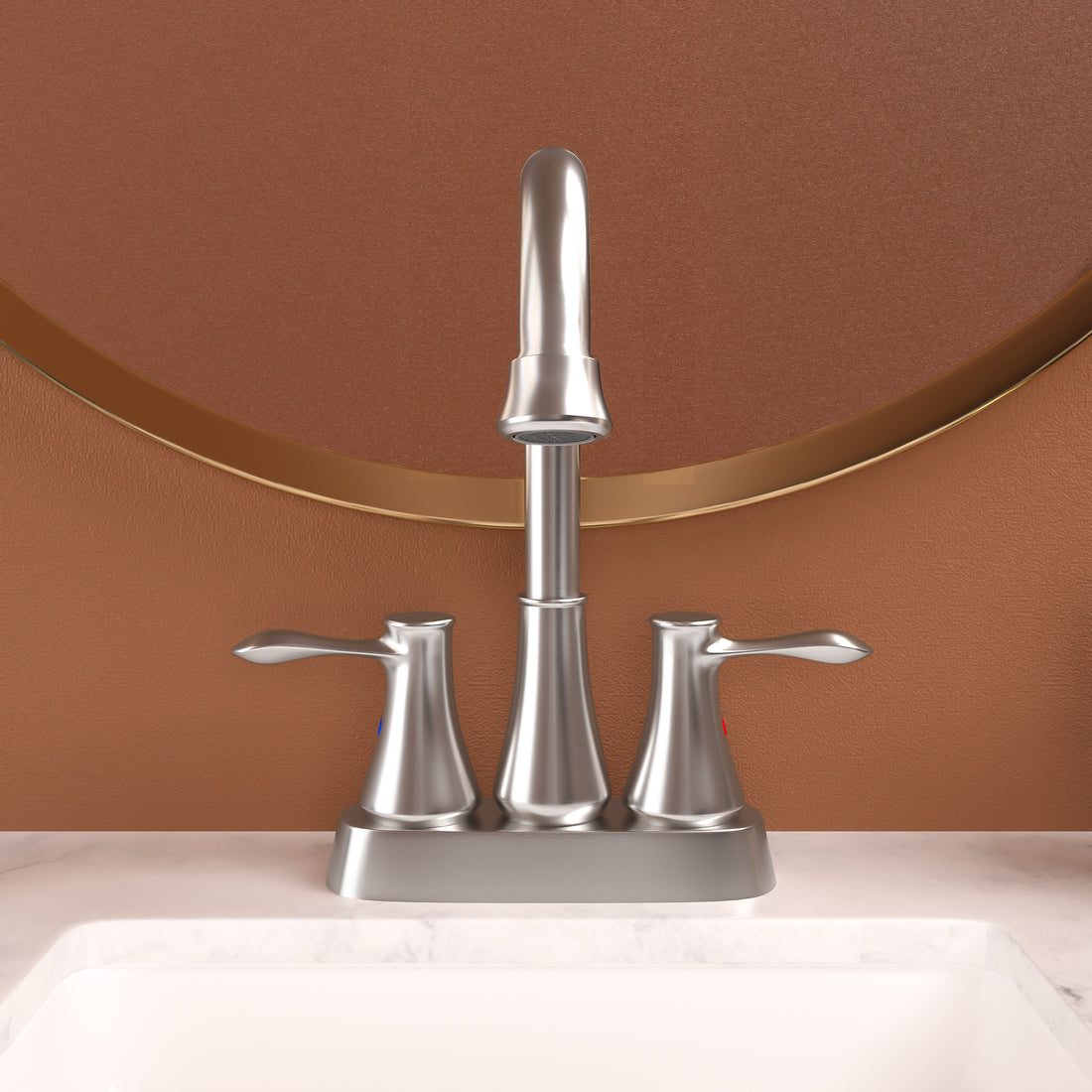 4 Inch 2 Handle Centerset Bathroom Faucet,With Pop Up Drain And 2 Water Supply Lines,Brushed Nickel Brushed Nickel Stainless Steel