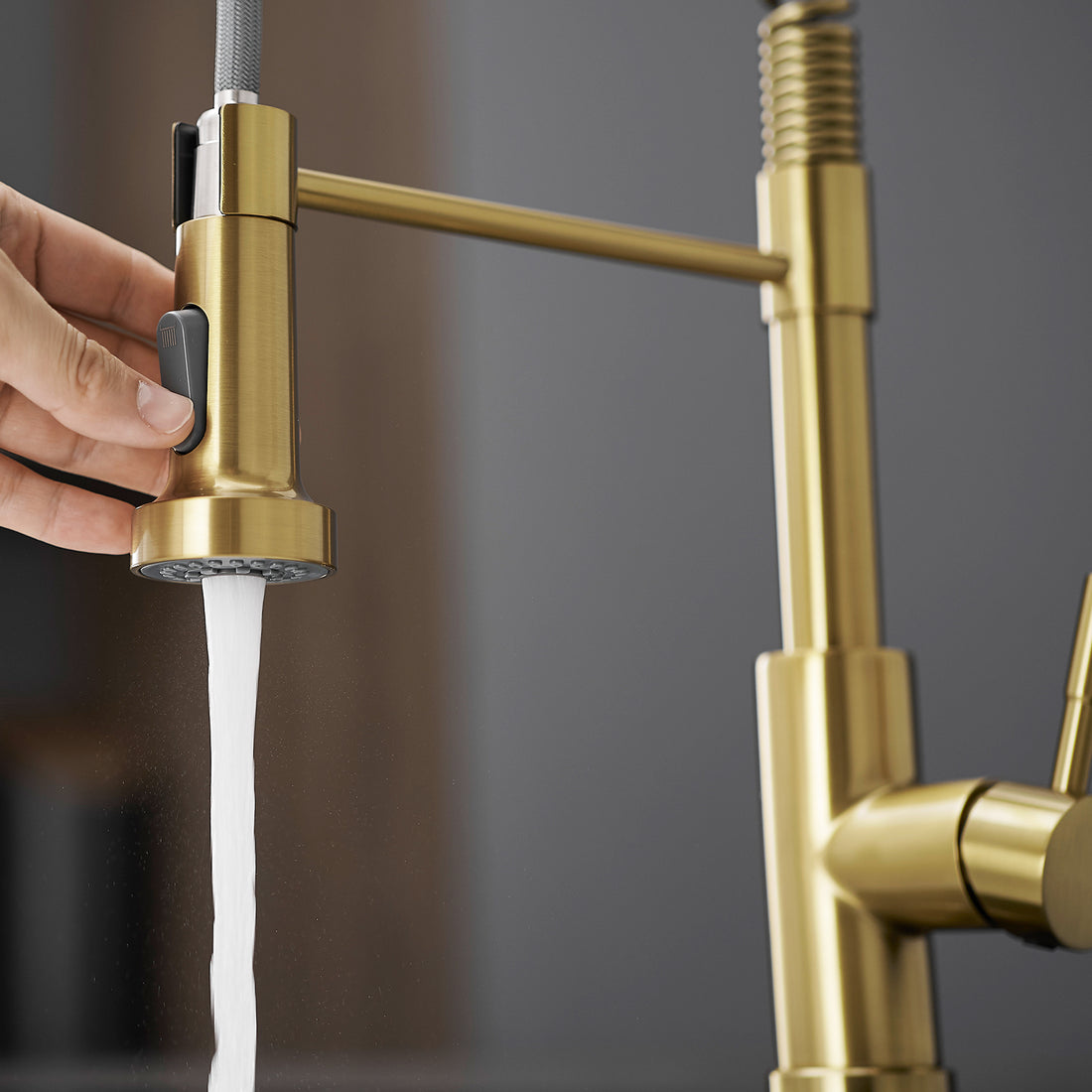 Kitchen Faucet With Pull Down Sprayer Brushed Gold Stainless Steel Single Handle Pull Out Spring Sink Faucets Brushed Gold Kitchen Classic,Contemporary,Modern Ceramic Stainless Steel