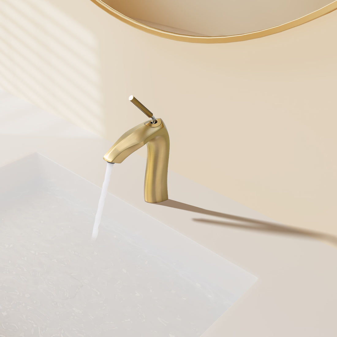 Single Handle Bathroom Vanity Sink Faucet Brushed Gold Stainless Steel