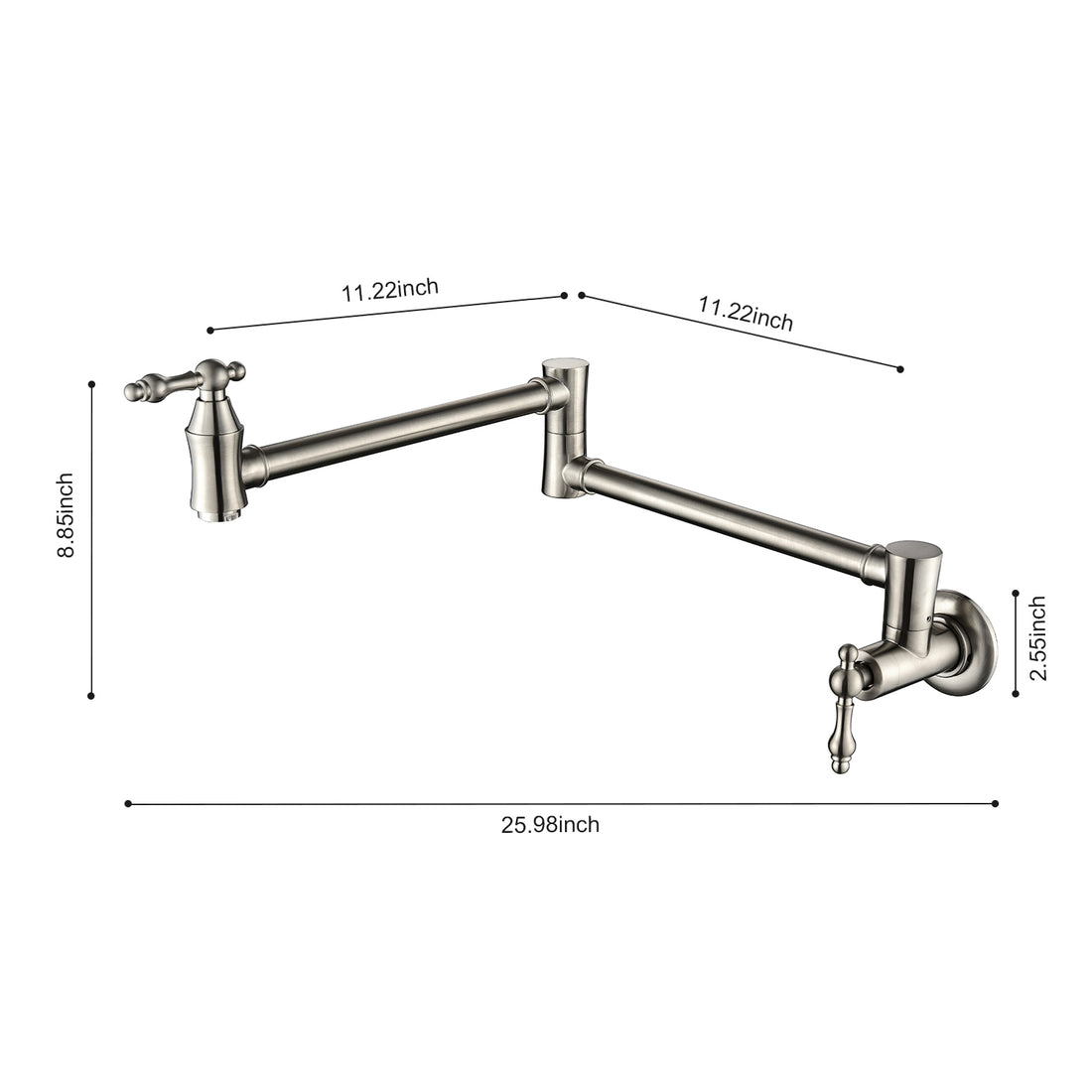 Pot Filler Faucet Wall Mount Brushed Nickel Brass