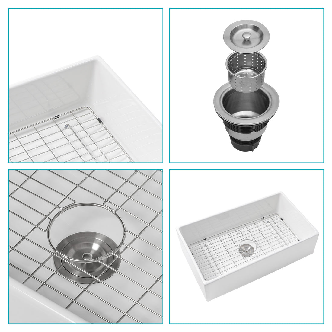 Name: 33 White Farmhouse Sink - 33 Inch Kitchen Sink Apron Front Ceramic Single Bowl...