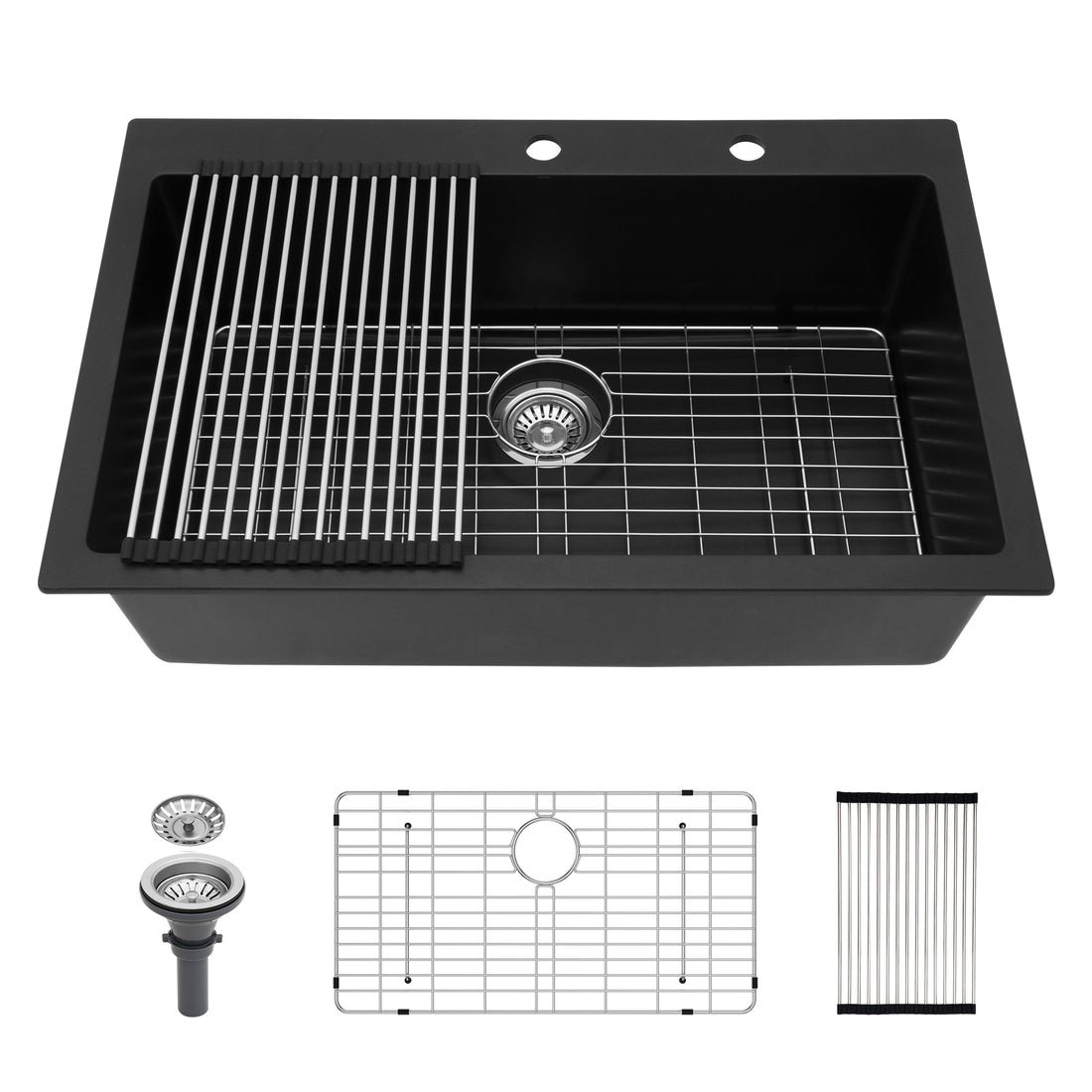Quartz Kitchen Sink 33X22" Black Granite Composite Drop In Kitchen Sink Black Quartz