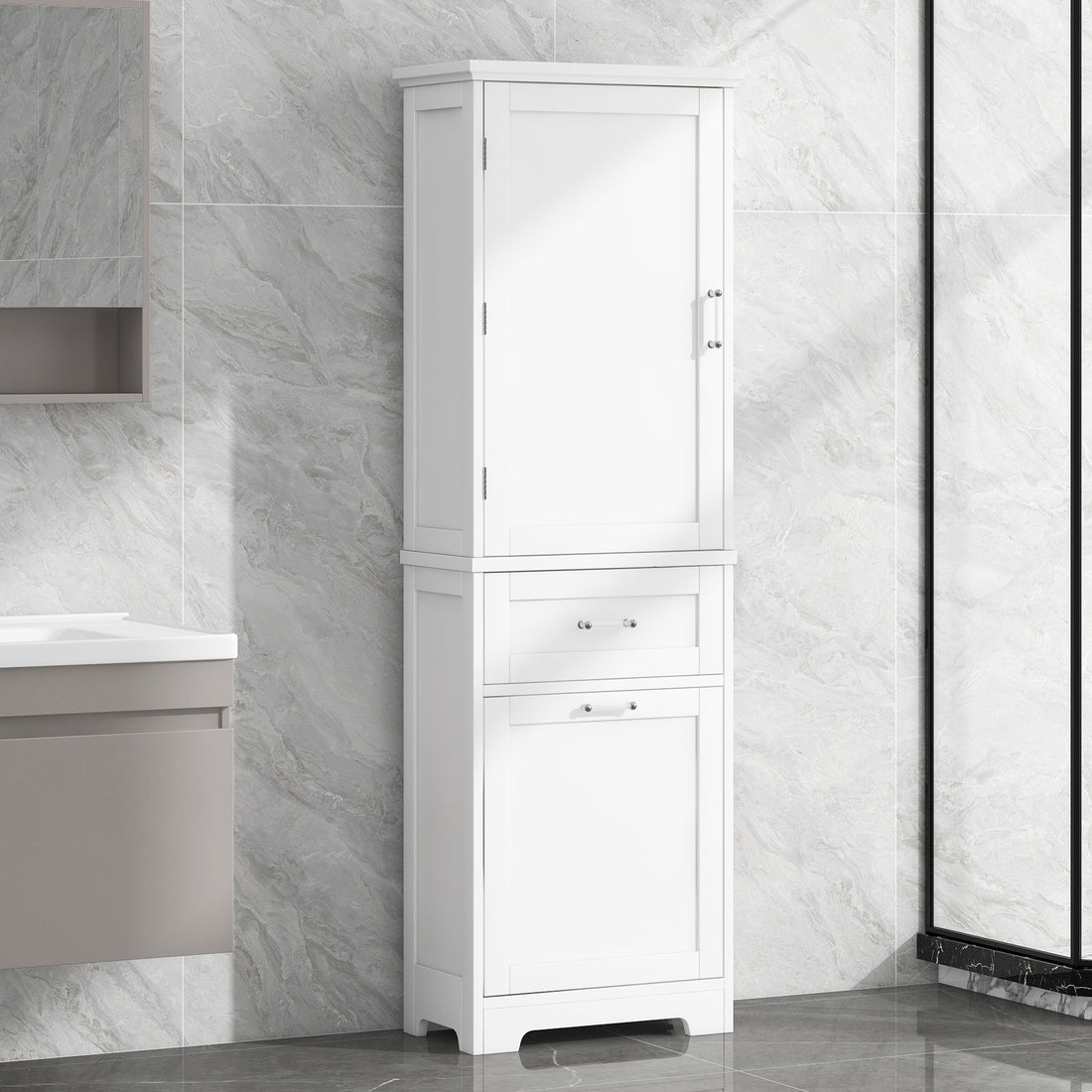 Tall Bathroom Storage Cabinet, Freestanding Storage Cabinet With Two Different Size Drawers And Adjustable Shelf, Mdf Board With Painted Finish, White White Mdf