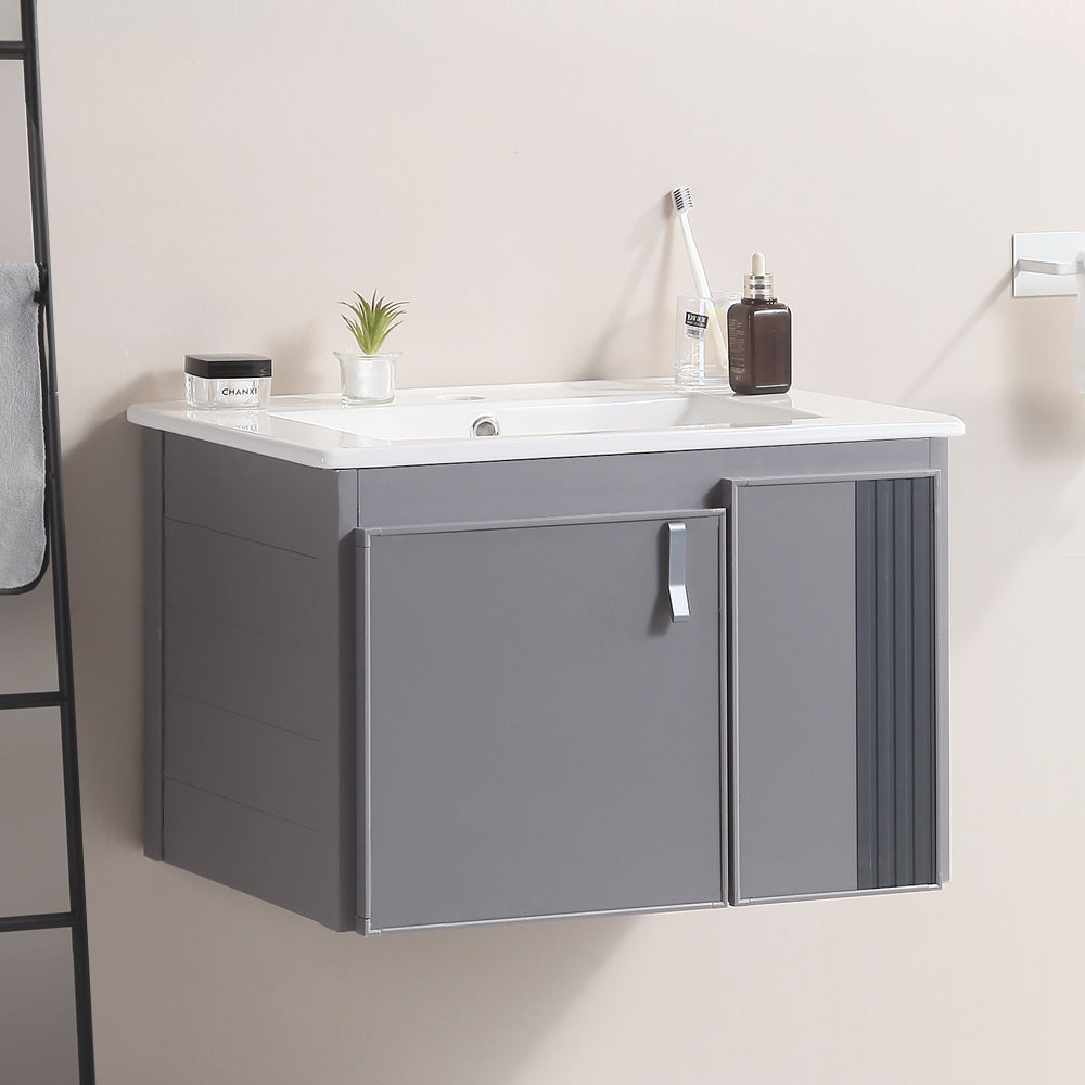 24' Stylish Aluminum Wall Mounted Bathroom Vanity With White Sink,Asymmetric Chic Soft Close Cabinet Doors, Aluminium,Excluding Faucets,Grey Grey Aluminium