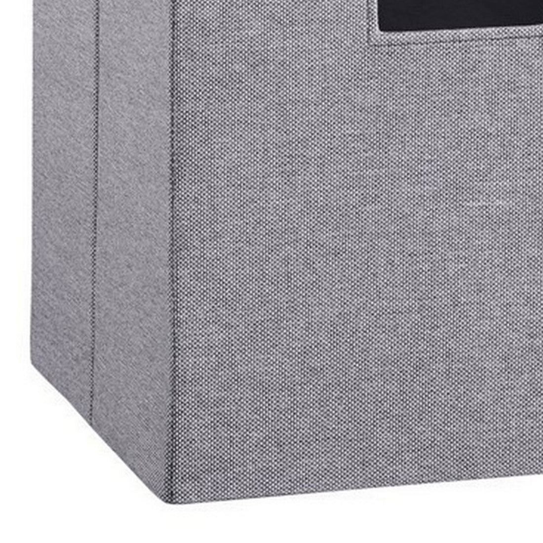 13, 11 Inch Fabric Draped Foldable Storage Bin, Cutout Handles, Set Of 2, Gray Gray Wood Fabric