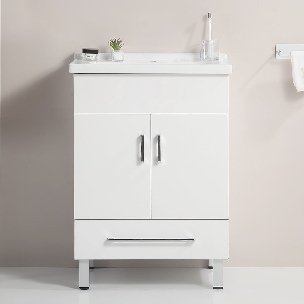 24 Inch Double Doors With Drawers White Bathroom Cabinet With Ceramic Sink White Solid Wood