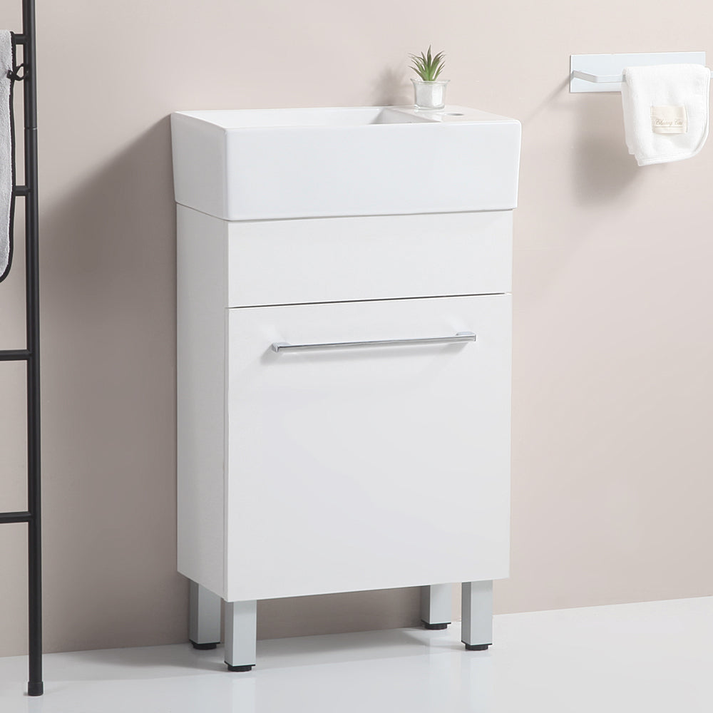 19 "White Bathroom Cabinet With Ceramic Sink White Solid Wood
