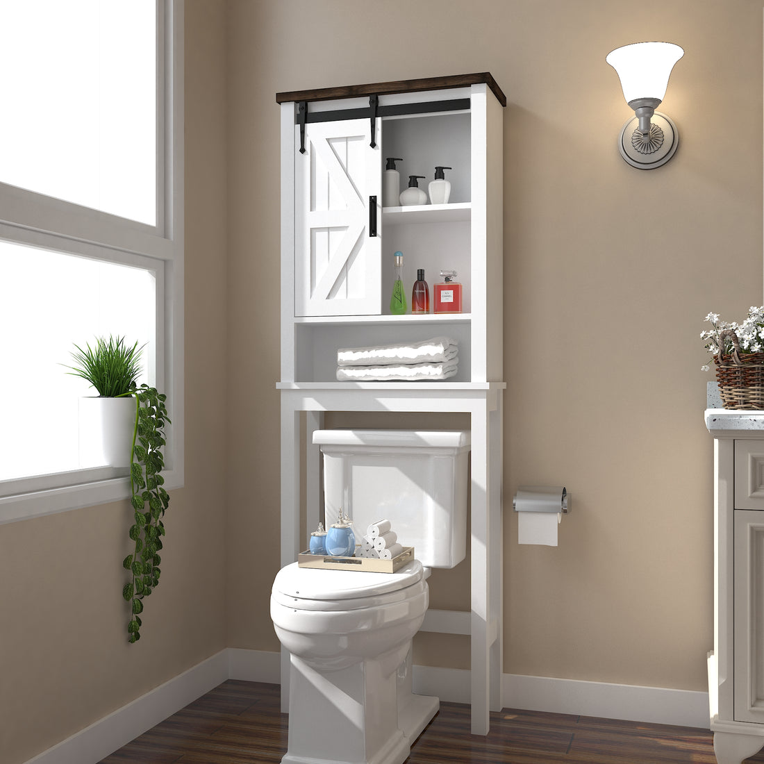 Over The Toilet Storage Cabinet, Farmhouse Above Toilet Storage Cabinet With Adjustable Shelves & Sliding Barn Doors, Organizers Over Toilet For Bathroom, Living Room, White White Vintage 1 Bathroom