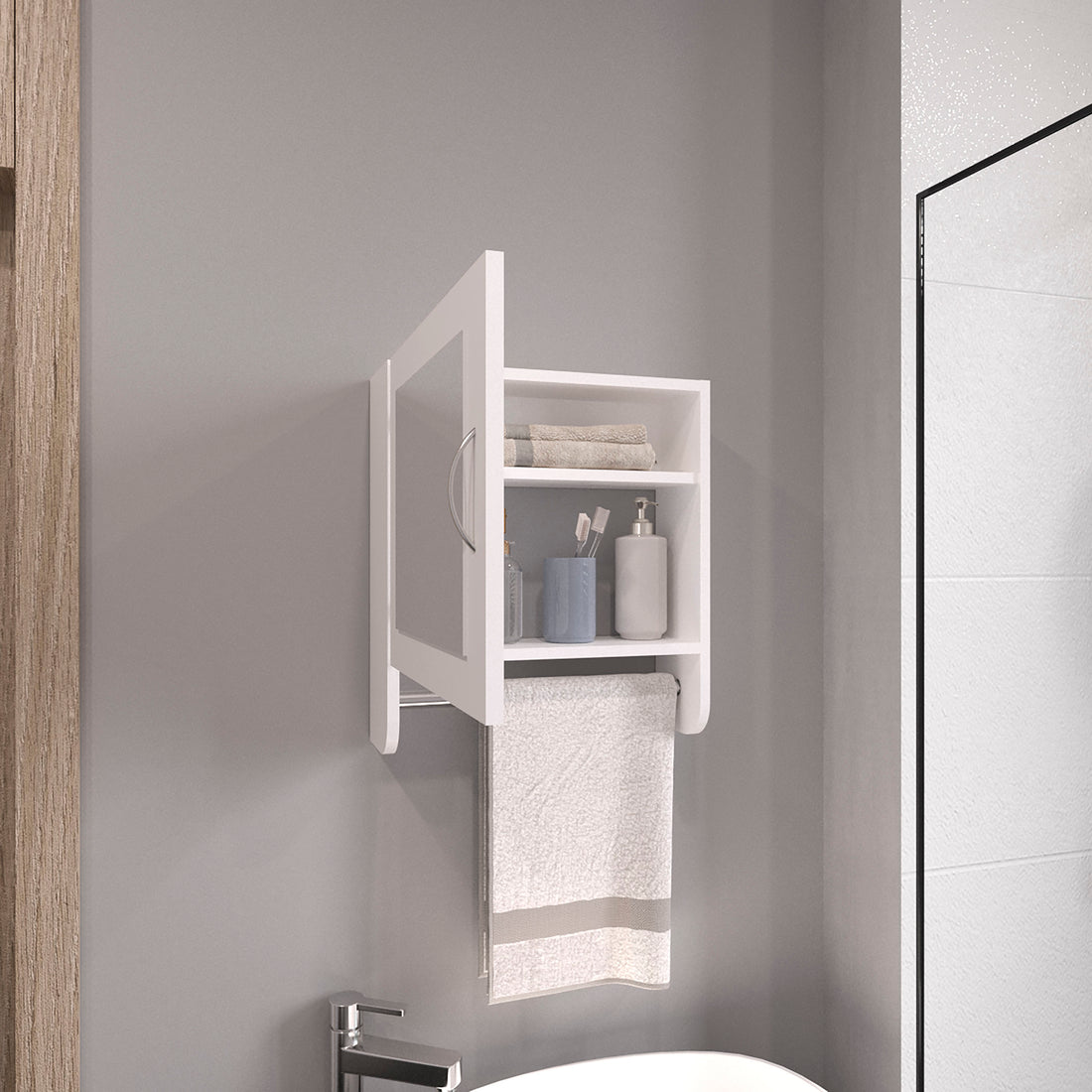 Botiq 19.7" H X 17.7" W Mirror Medicine Cabinet With Towel Rack White, One Door With Two Interior Shelves For Bathroom, Kitchen White White Particle Board