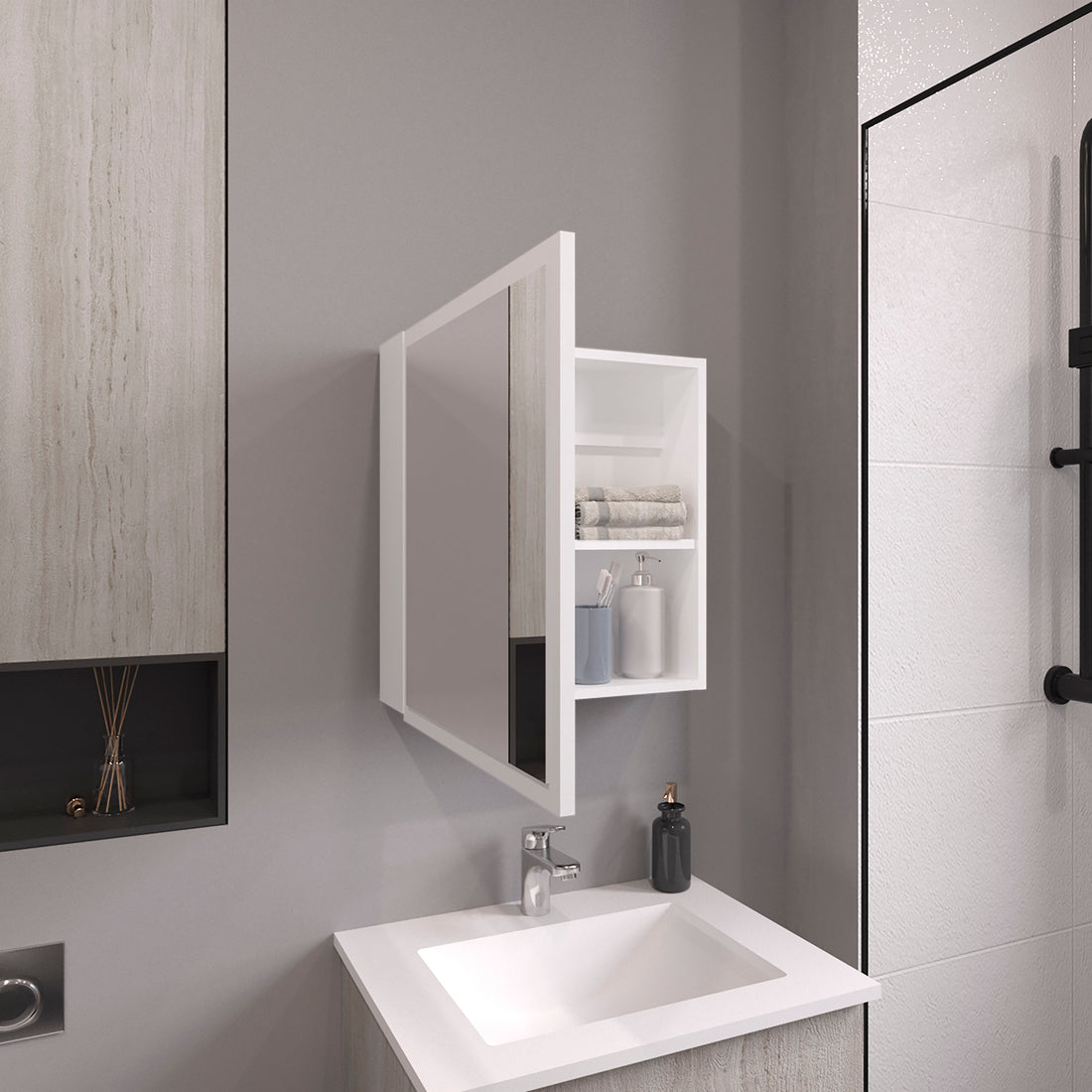 Duma 21.1" H X 19.7" W Mirror Medicine Cabinet, One Door With Four Interior Shelves For Bathroom, Kitchen White White Particle Board