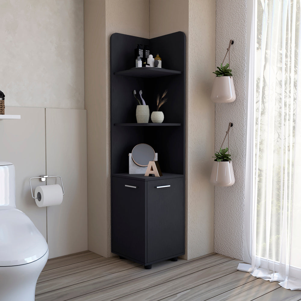 Name: Malibu 62" Tall Double Door Corner Linen Cabinet with Four Shelves Black Characteristics: It...