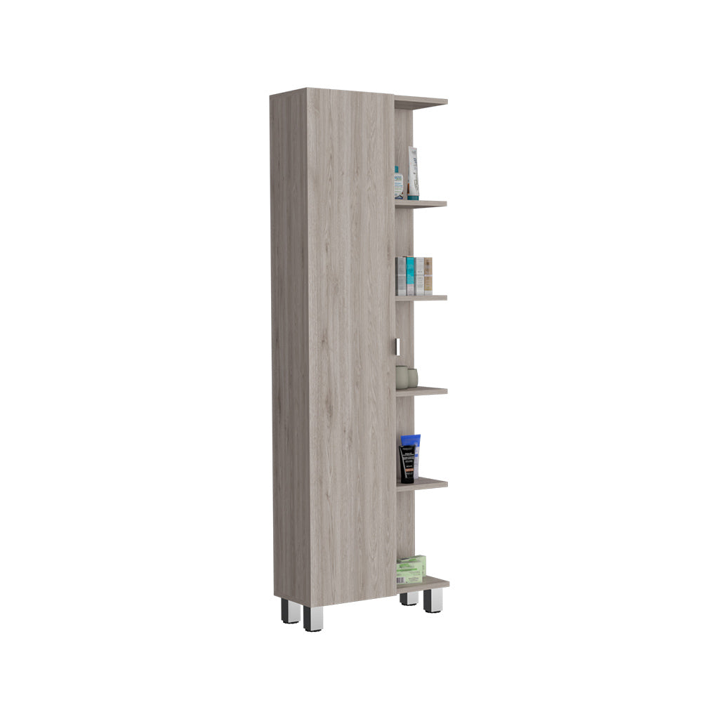 Corner Cabinet Womppi, Five Open Shelves, Single Door, Light Gray Finish Light Gray Particle Board