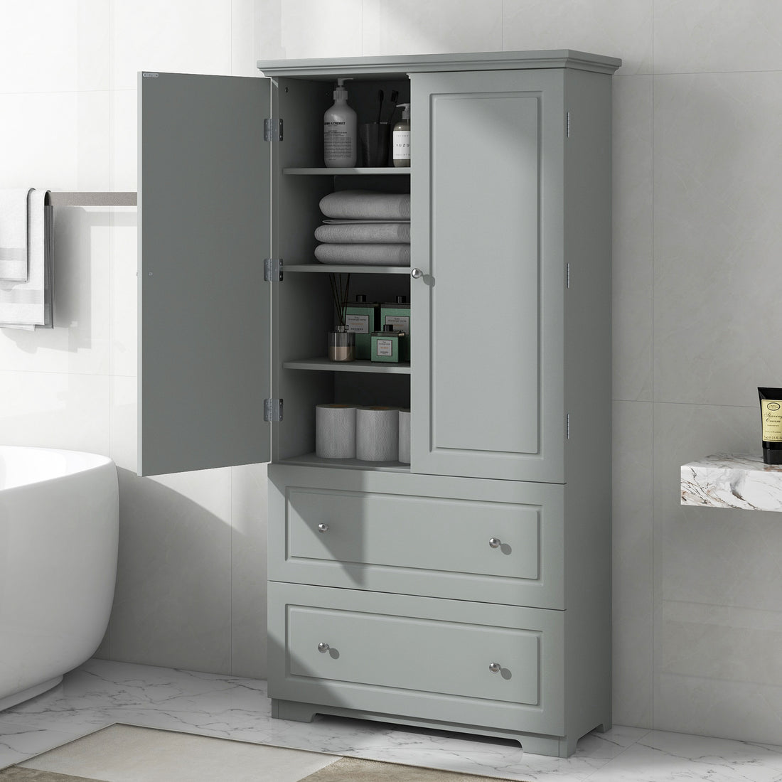 Wide Bathroom Storage Cabinet, Freestanding Storage Cabinet With Two Drawers And Adjustable Shelf, Mdf Board With Painted Finish, Grey Grey Mdf