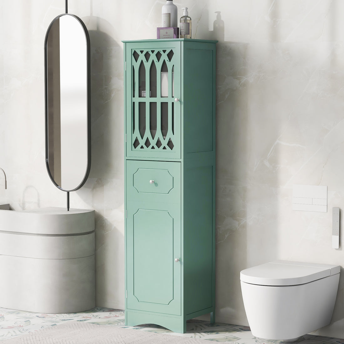 Tall Bathroom Cabinet, Freestanding Storage Cabinet With Drawer And Doors, Mdf Board, Acrylic Door, Adjustable Shelf, Green Green Mdf