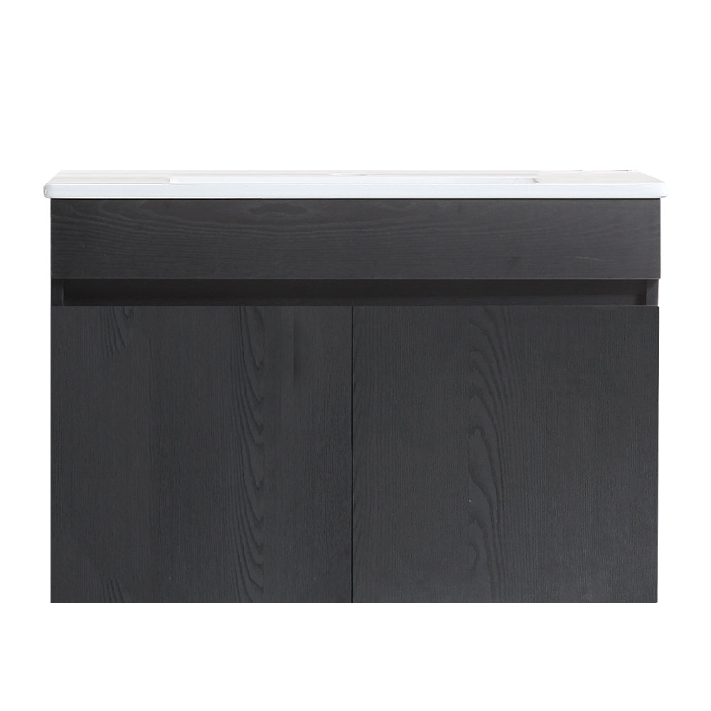 24 Inch Wall Mounted Bathroom Vanity With White Ceramic Basin,Two Soft Close Cabinet Doors, Solid Wood,Excluding Faucets,Black Black Solid Wood