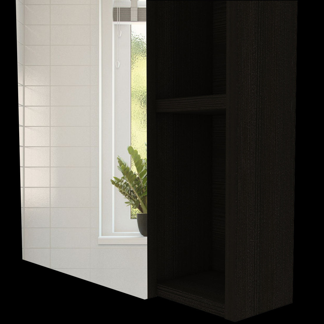 Whirlwind 1 Shelf Rectangle Medicine Cabinet With Mirror Black Wengue Black Particle Board