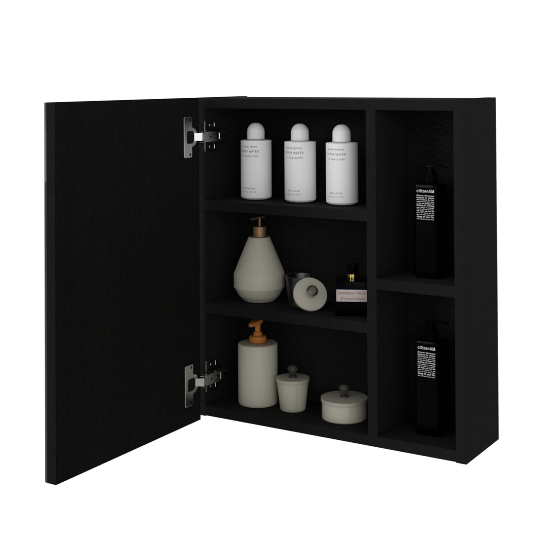 Labelle Medicine Cabinet With Mirror, Five Internal Shelves, Single Door Black Black Particle Board Particle Board