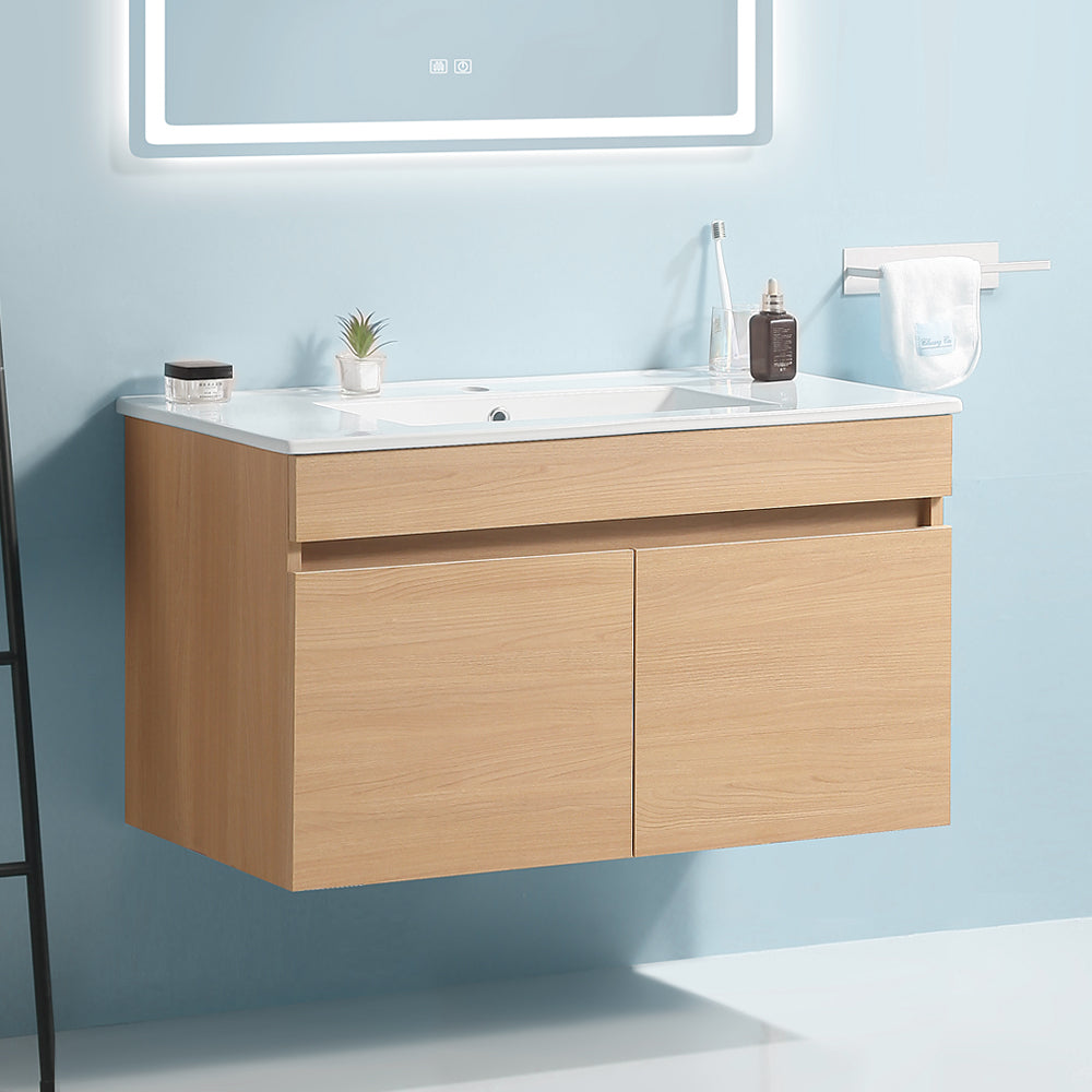 Modern Design 36 Inch Float Mounting Bathroom Vanity With Sink Soft Close Door,2 Doors 00636 Imo Kd Packing Imitative Oak 2 1 Bathroom Wall Mounted Modern Plywood Plywood