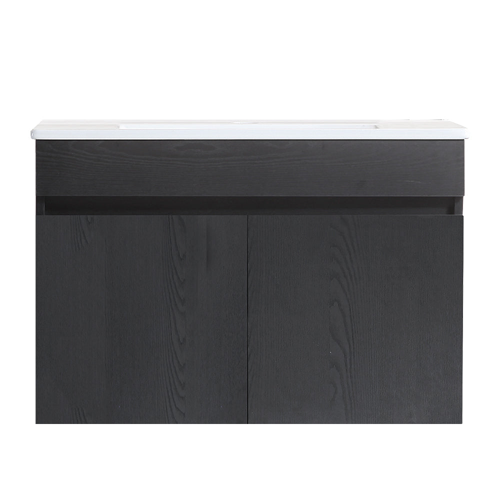 30 Inch Wall Mounted Bathroom Vanity With White Ceramic Basin,Two Soft Close Cabinet Doors, Solid Wood,Excluding Faucets,Black Black Solid Wood