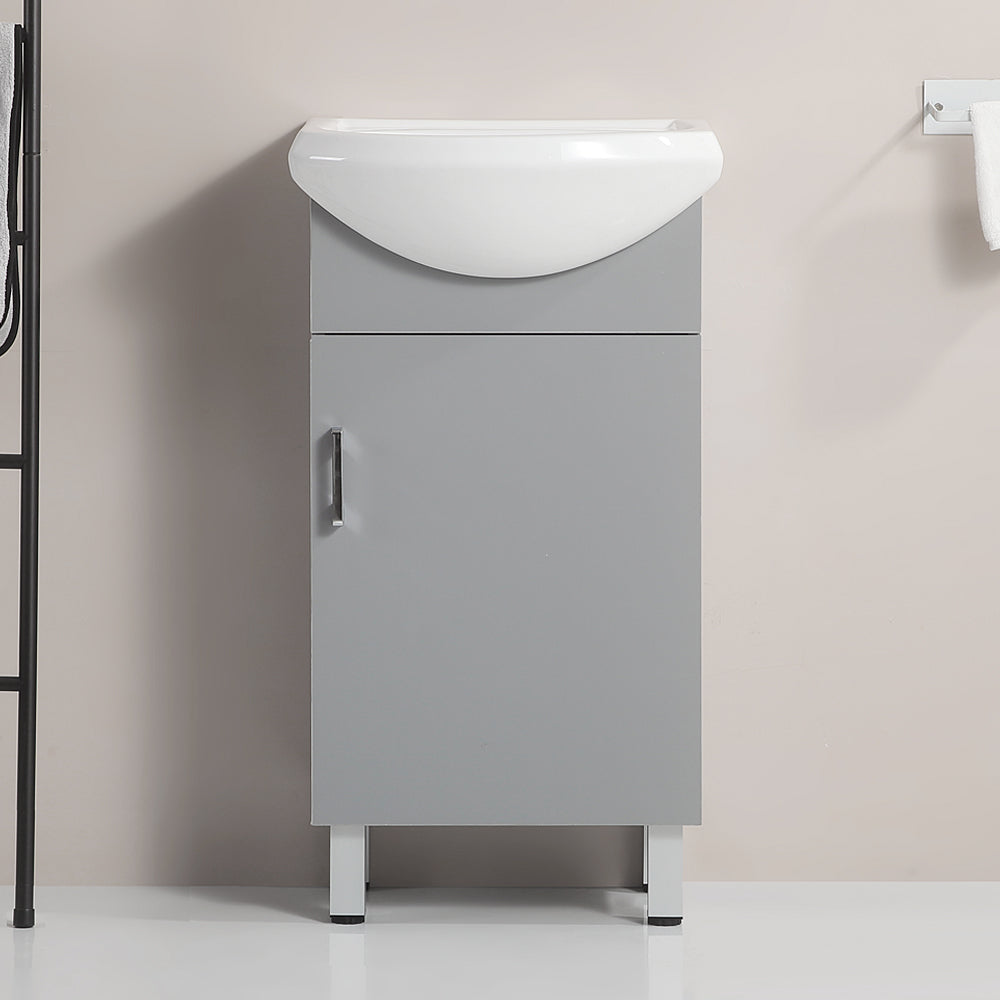 18 Inch Mini Bathroom Cabinet With Ceramic Sink Grey Grey Solid Wood