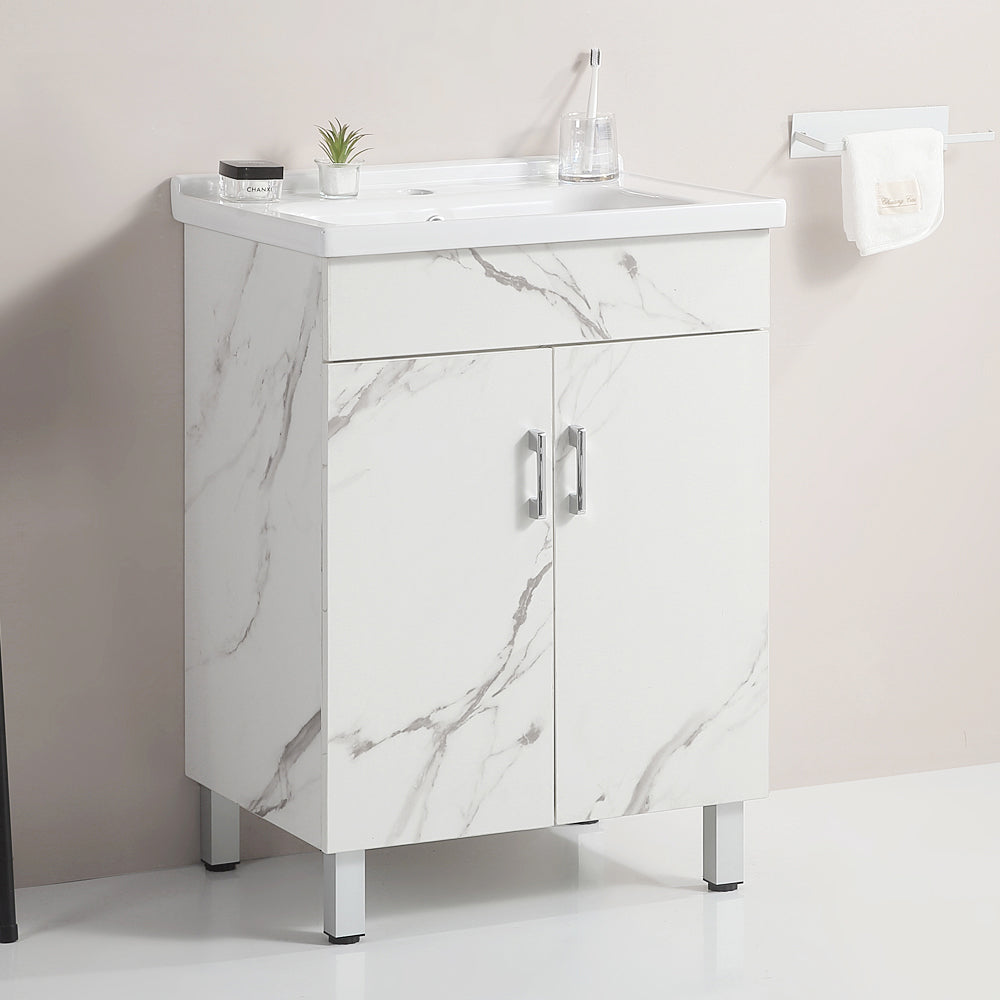 24 Inch Marble Textured Bathroom Cabinet With Ceramic Sink Marble Solid Wood
