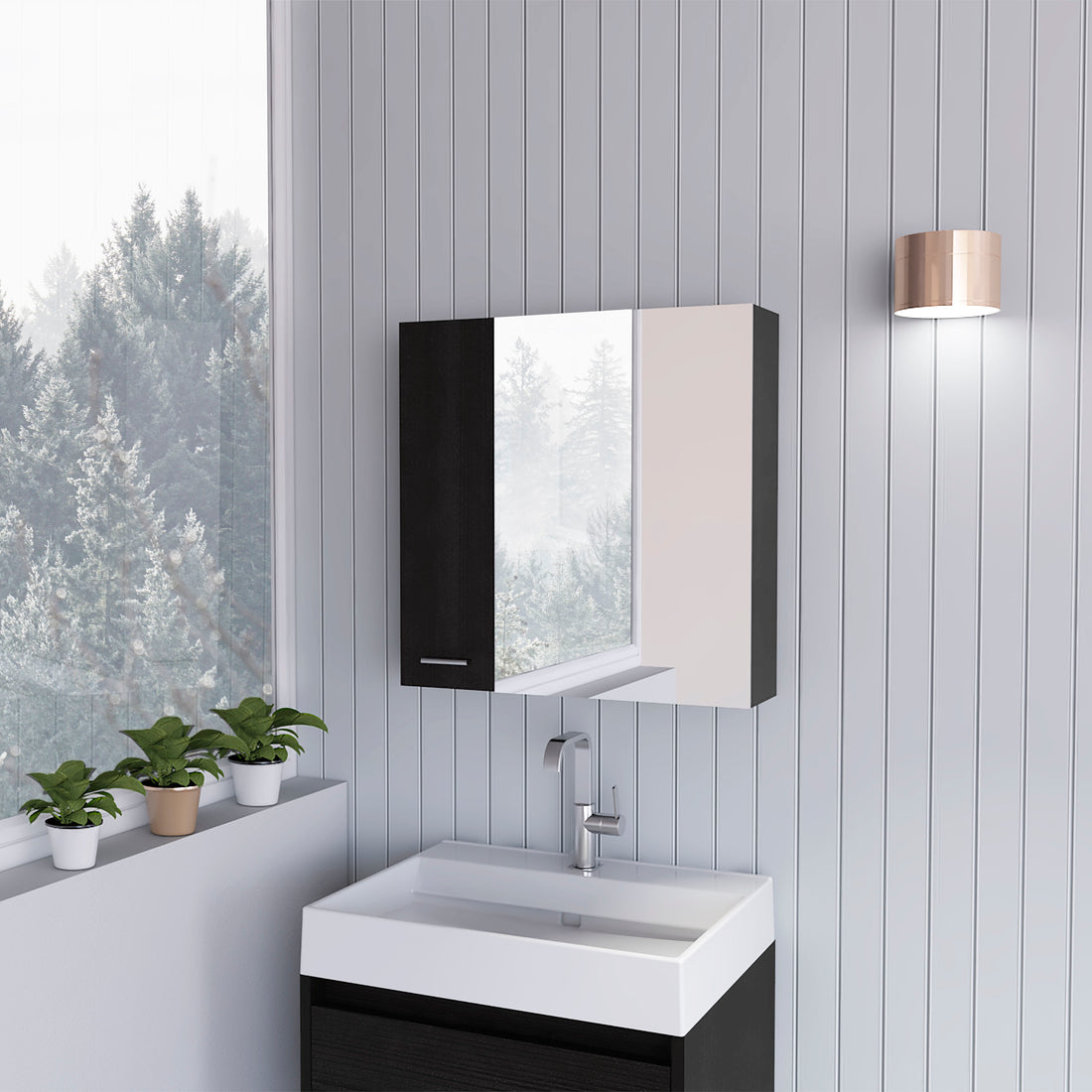 Name: Medicine Cabinet Sanford, Bathroom, Black Characteristics: Mirrored Door: Features a stylish mirrored door that...