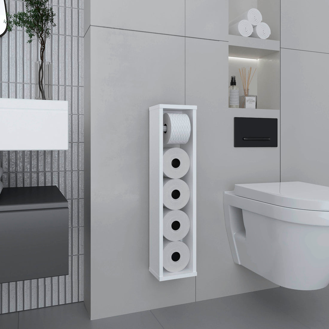 Supai Toilet Paper Holder In Melamine, White White 1 24 To 31 In Bathroom Freestanding Modern 5 10 Inches Particle Board Melamine