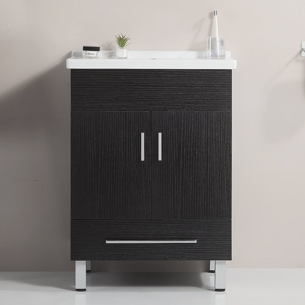24 Inch Double Doors With Drawers Black Bathroom Cabinet With Ceramic Sink Black Solid Wood