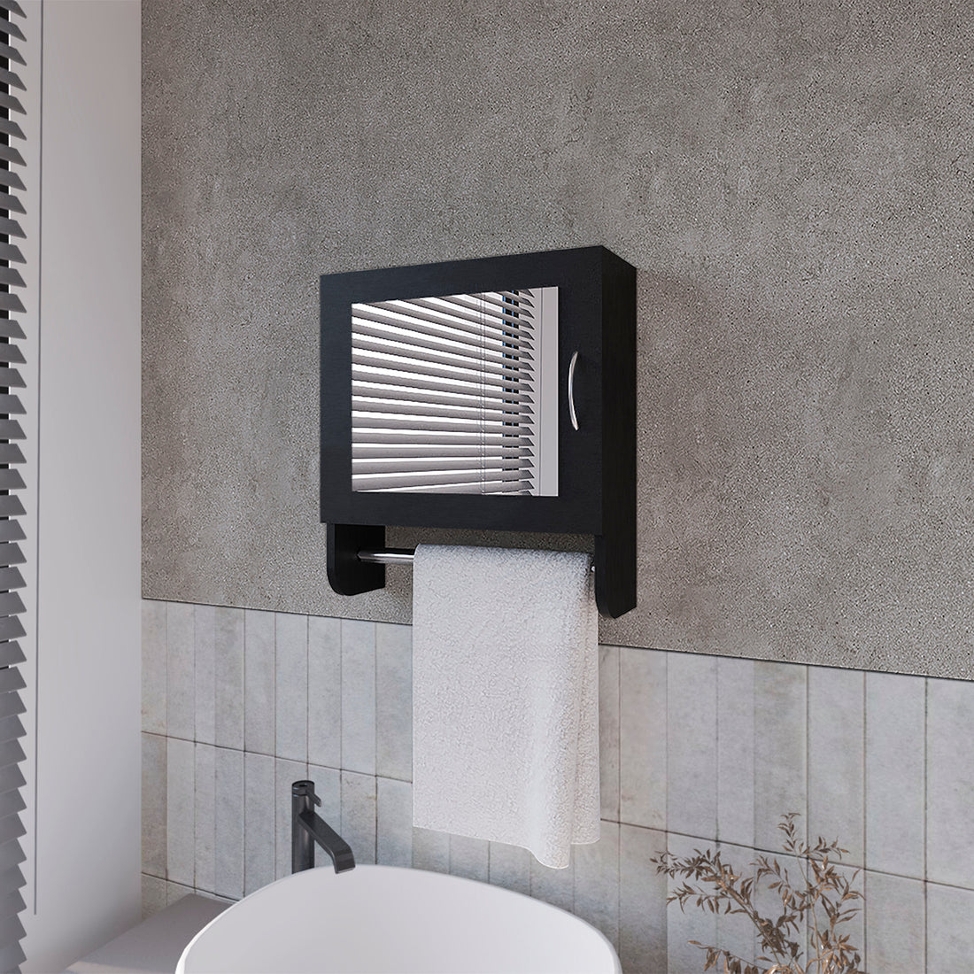 Name: Medicine Cabinet Riley, Bathroom, Black Characteristics: Towel Rod Included: 16.2"w rod for easy towel...