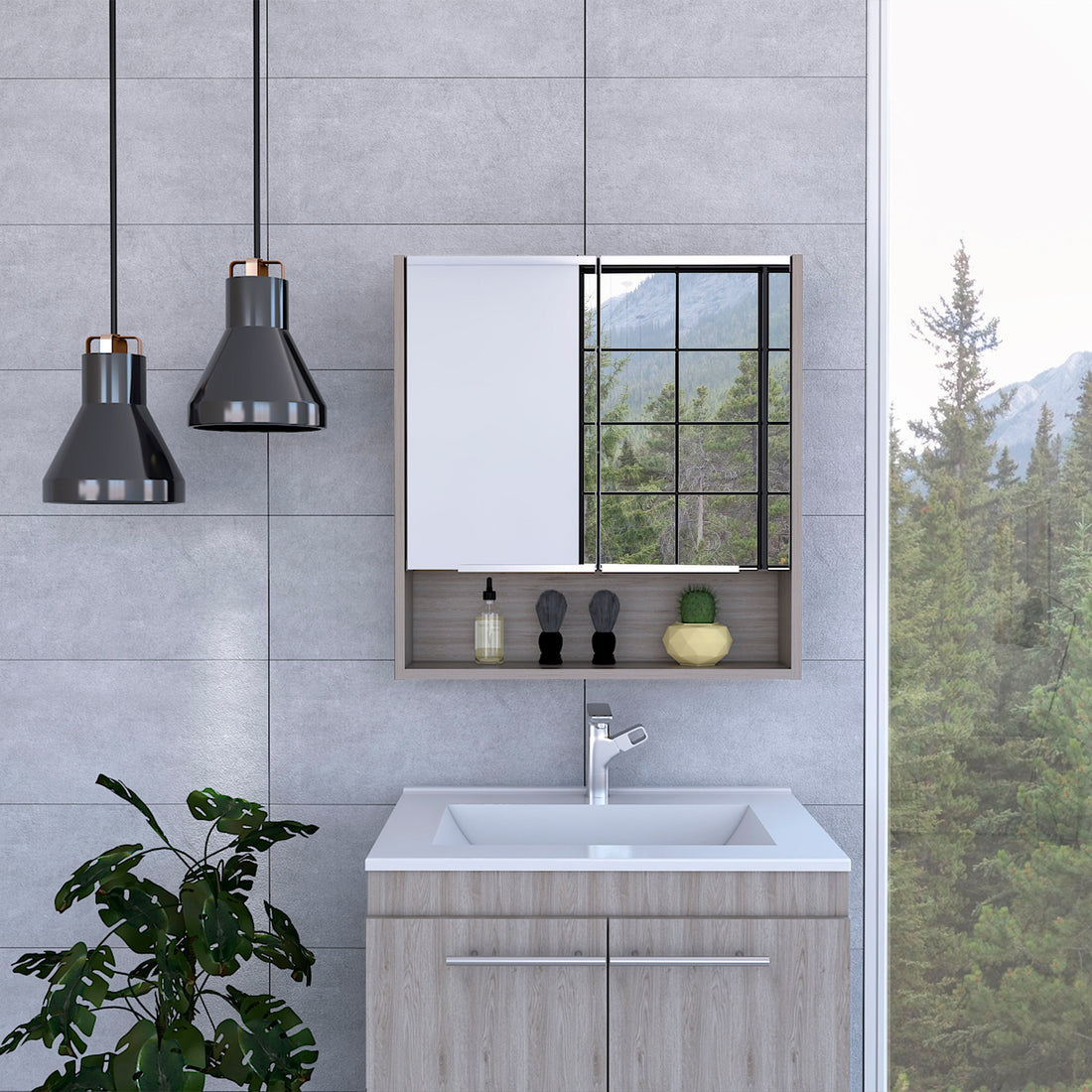 Mariana Medicine Cabinet, One External Shelf, Single Door Mirror Two Internal Shelves Light Gray Gray Particle Board Particle Board