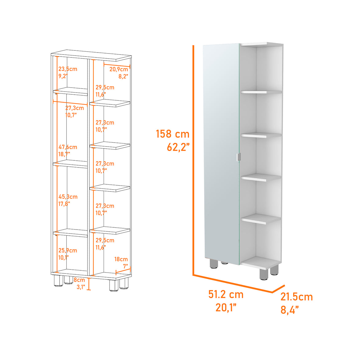 Los Angeles Linen Cabinet, Mirror, Five Shelves White Mdf Engineered Wood
