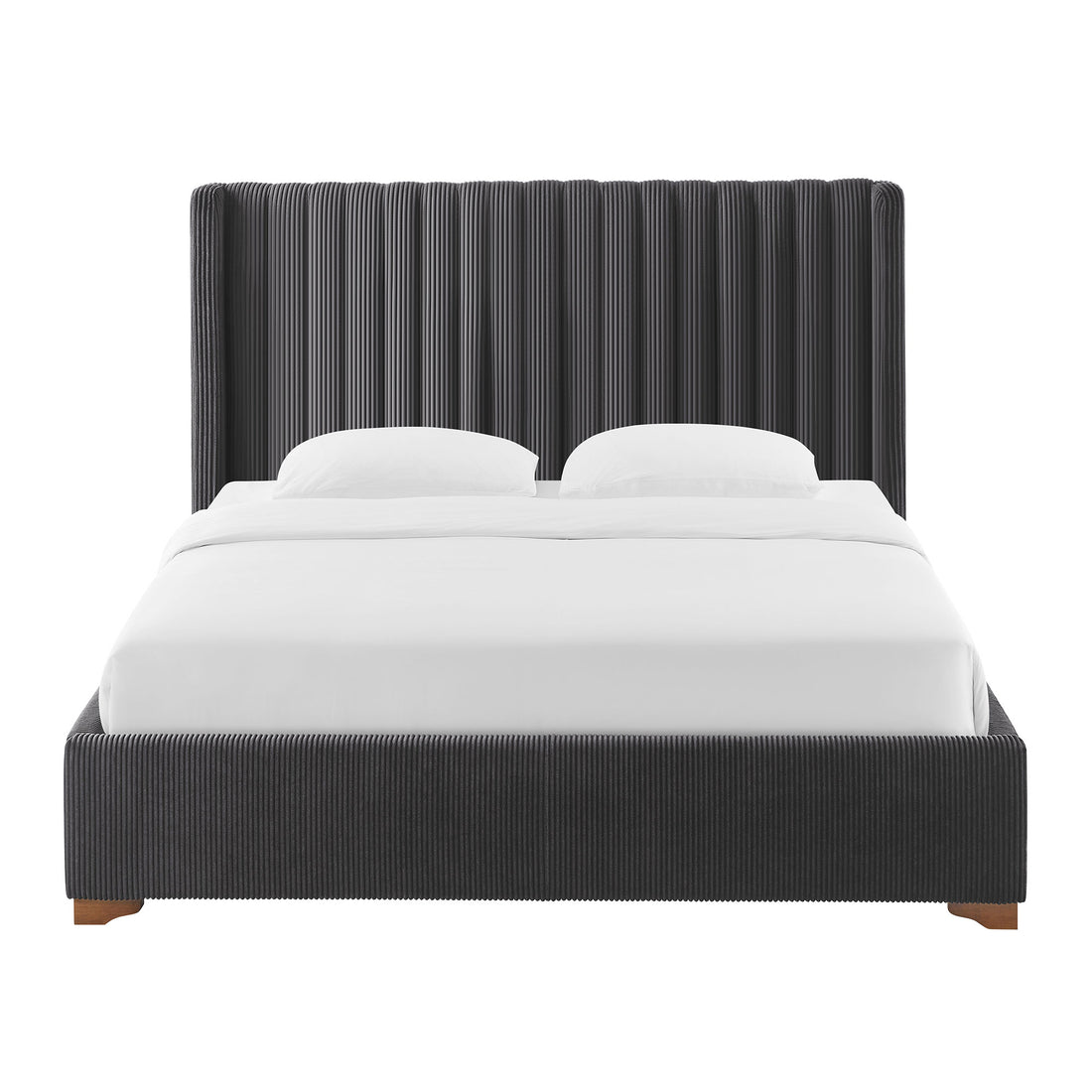 Queen Size Modern Design Bed Frame Upholstered Queen Bed Frame Platform With Headboard Corduroy Headboard Wooden Slats Support, No Box Spring Needed,Mattress Foundation,Black Queen Black Corduroy