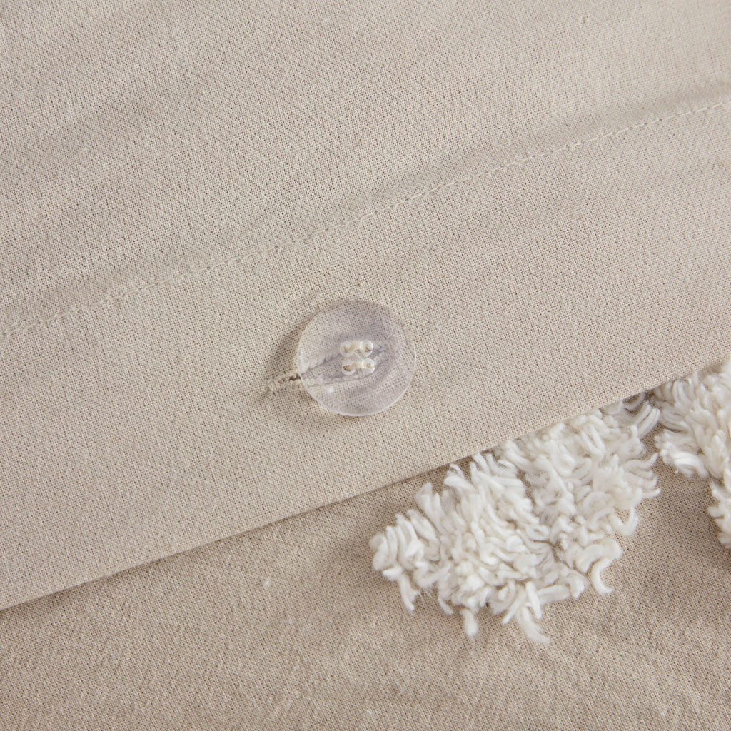 3 Piece Tufted Cotton Chenille Duvet Cover Set Queen Ivory Taupe Cotton