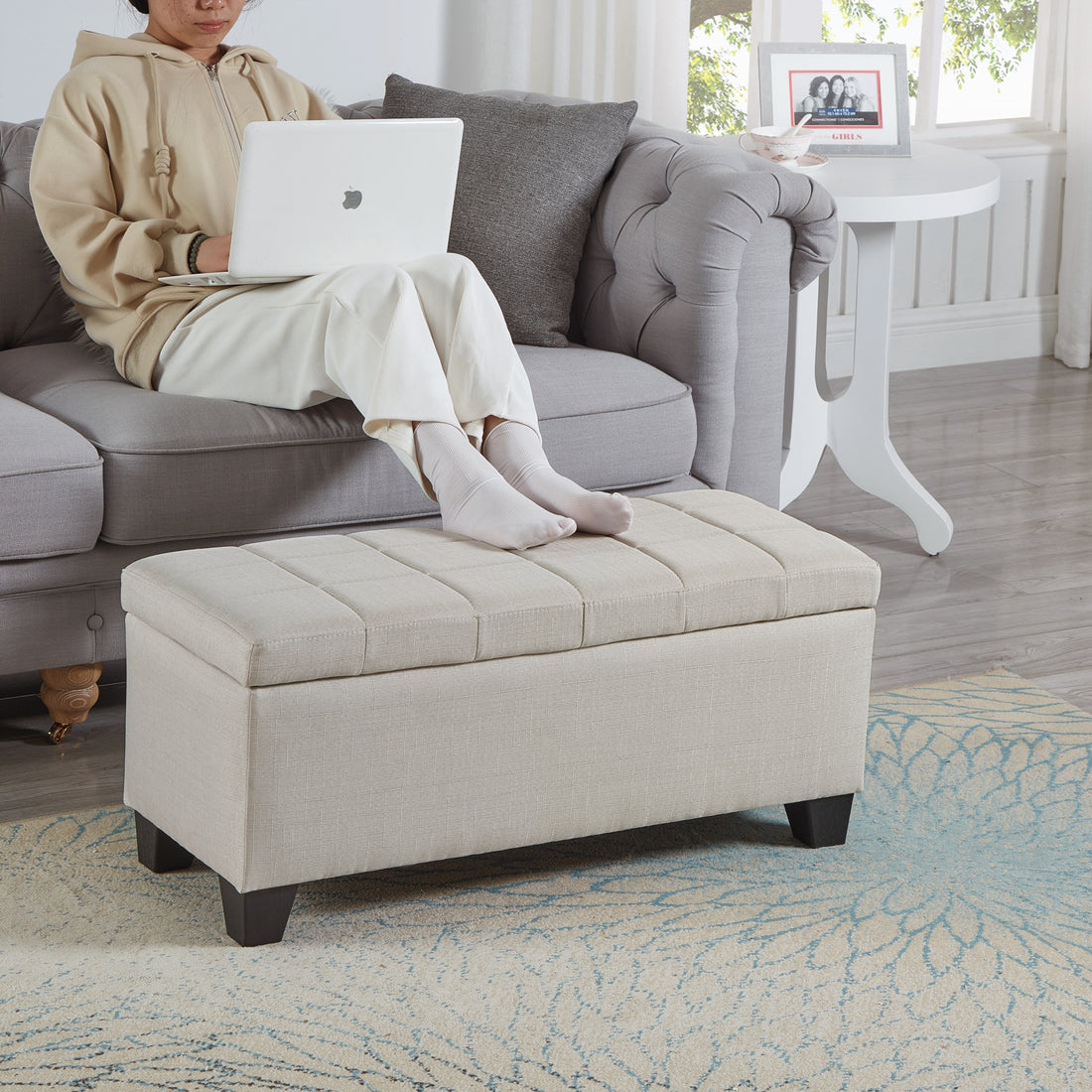 Upholstered Storage Rectangular Bench For Entryway Bench,Bedroom End Of Bed Bench Foot Of The Bed,Bench Entryway Ligth Beige Linen Fabric Light Beige Espresso Bedroom Antique,Classic,Contemporary,Modern Rubberwood Mdf Fabric