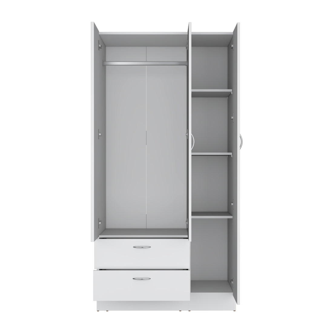 Misuri Wardrobe Armoire With Double Door, Drawer, Hanging Rod, And Open Shelves White White Bedroom Particle Board