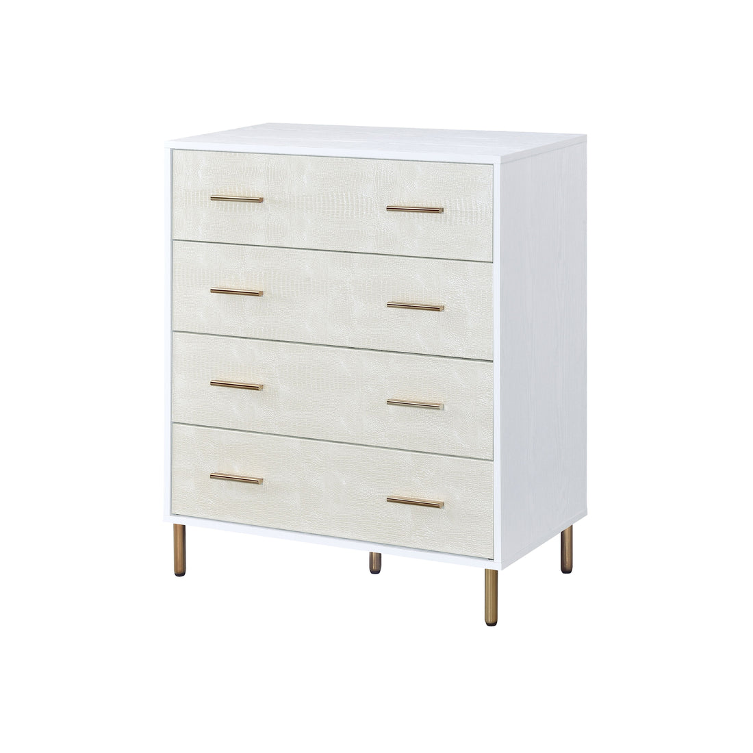 White And Champagne 4 Drawer Chest White Gold Bedroom Wood Metal