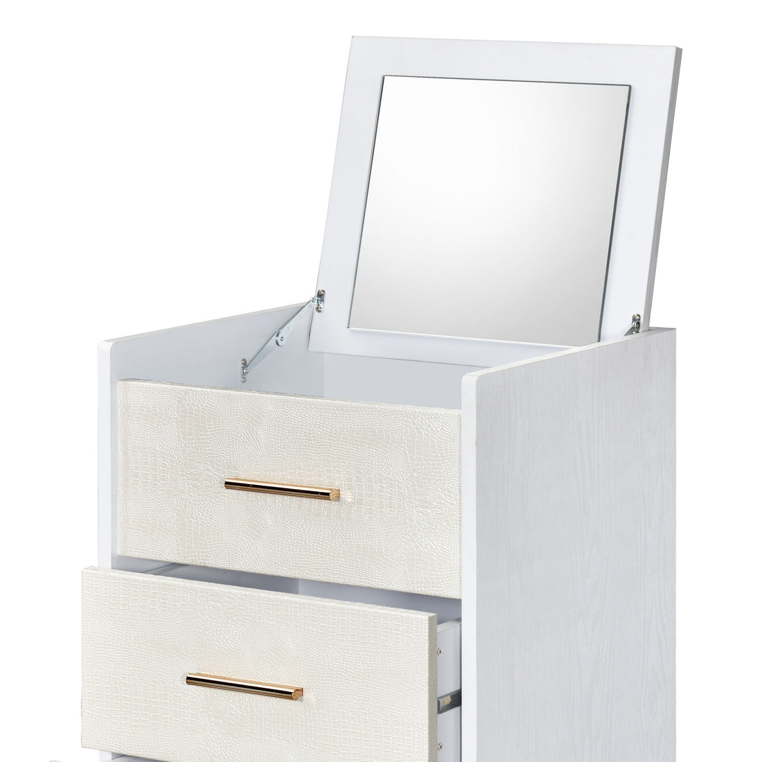 Wood Jewelry Armoire Having 6 Drawers With Mirror Front, White White Wood